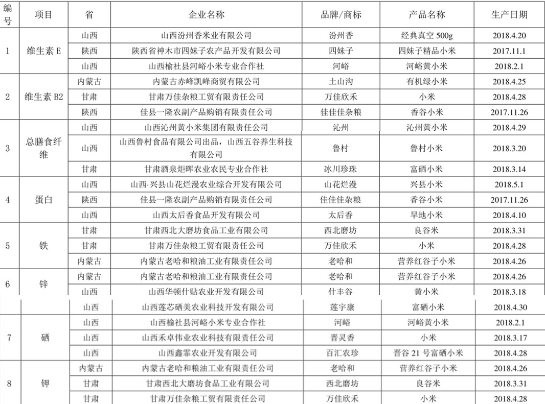 接下來這個榜單就是小米的營養(yǎng)鑒評結果